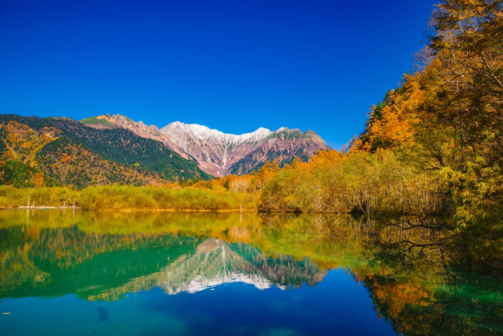 「大正池」这片绝美的池水,坐落在日本长野县和岐阜县之间,以绝佳的美景和神奇的气氛闻名于世。1915 年,烧岳火山爆发后形成大正池,如今成为上高地的必访景点。湖泊水面如镜,能够完美地倒映烧岳和穗高连峰的壮丽景色,特别是在晴朗的天气,景象绝对令人惊艳。