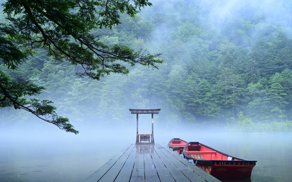 日本北阿尔卑斯的神秘之地「明神池」,位于明神岳的脚下,是被针叶树包围的湖泊,湖水清澈见底,如同一面明镜,过去也被称为「镜池」。春夏时,湖面碧波荡漾,映衬出澄澈蓝天和茂密绿意;到了秋冬,则呈现出枫红缤纷、云雾缭绕如梦幻仙境般的幻彩光影。