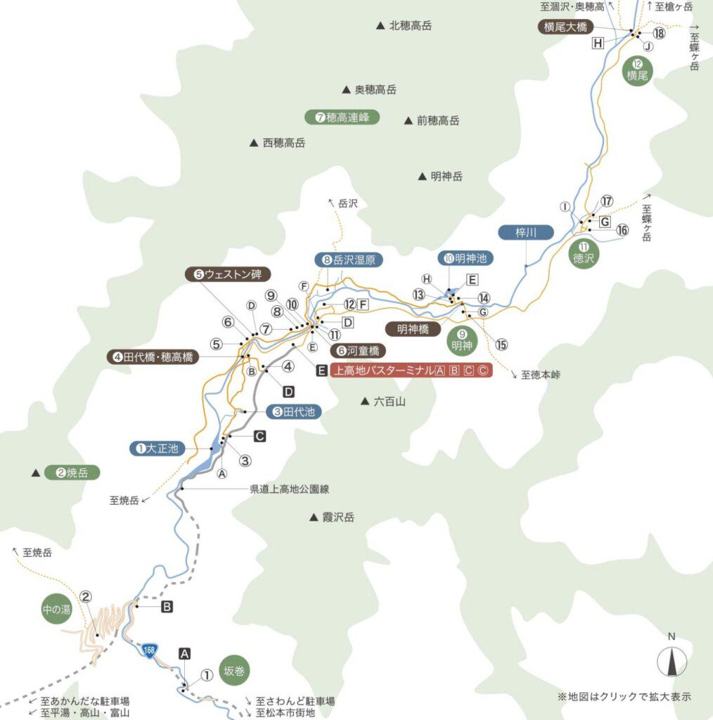 | 大正池公车站→河童桥 | 步行约60分钟 |
