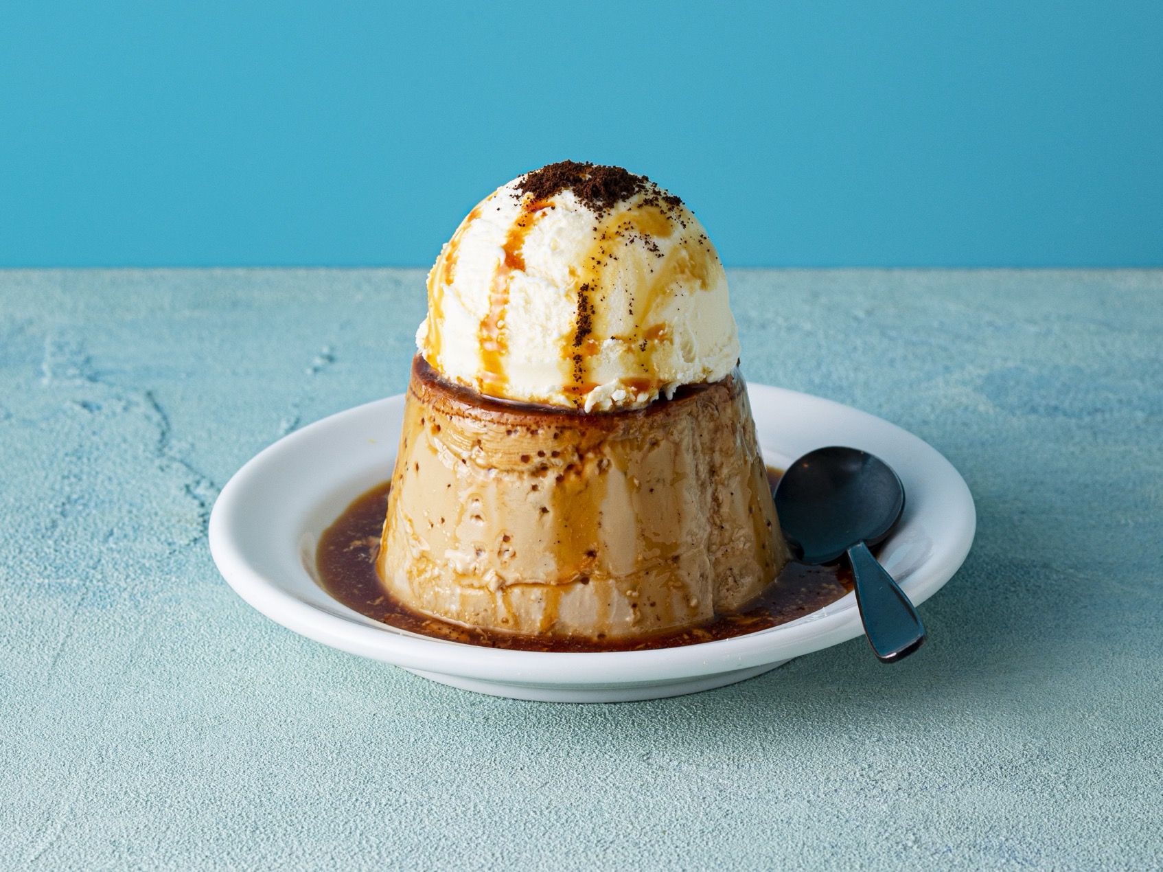来自 WK2,售价990日元,限内用。大尺寸咖啡布丁上方再叠上一球冰淇淋,视觉很有舞台效果。布丁本体滑顺浓郁,包裹着咖啡香,搭配焦糖、冰淇淋与咖啡豆碎,店家形容它是「既是甜点,也像一杯咖啡」的作品。若你偏爱微苦、不想只吃到一味甜腻,这款很有吸引力。