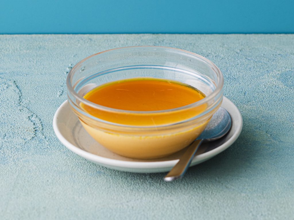 来自「纪之国屋 Entre」,售价270日元。这是自1978年以来持续热卖的经典款,连复古铝杯包装都保留至今。特色是蛋香鲜明、口感扎实,底部带有足量微苦焦糖,属于简单却耐吃的王道派布丁。