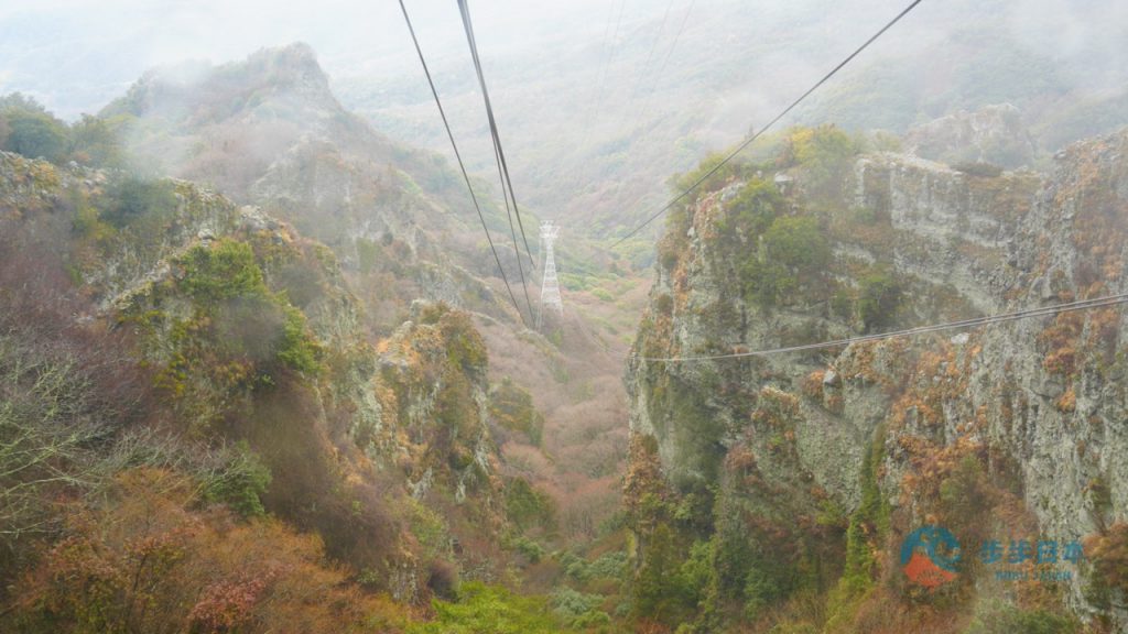 最令我暗自窃喜的是,「寒霞溪缆车(寒霞渓ロープウェイ)」上只有我们一行人!在日本观光多次的经验中,首次体验「包车」!360 度视角任挑任选,将山与海的景色尽收眼底。