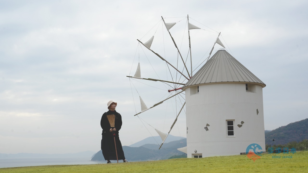 「希腊风车(ギリシャ風車)」可说是前往小豆岛,必须留下回忆的人气拍照地点。在橄榄公园可以免费借用扫把,只要跟着人潮,就可以轻松找到道具租借的地方。