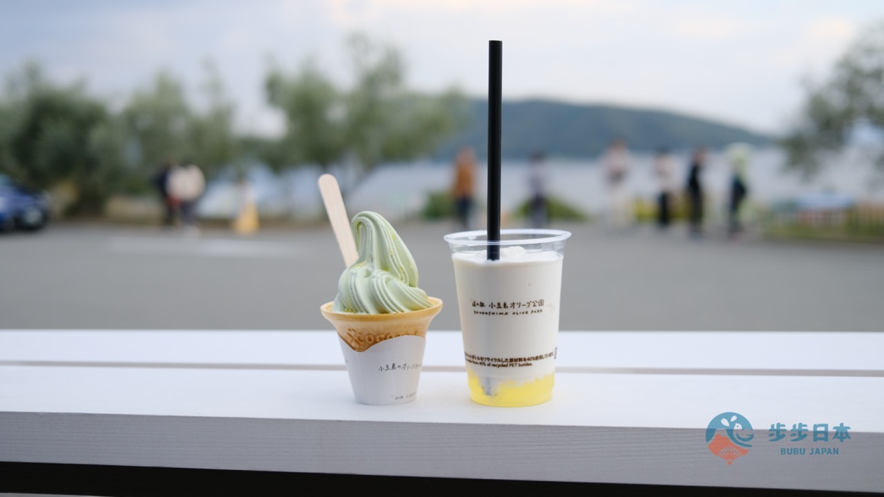 在小豆岛橄榄公园,能购买到完整的伴手礼品项,没有时间安排酱油及素面工厂参观,也可以在这里购买到相关产品及小豆岛当地产的橄榄油化妆品、食用油等。