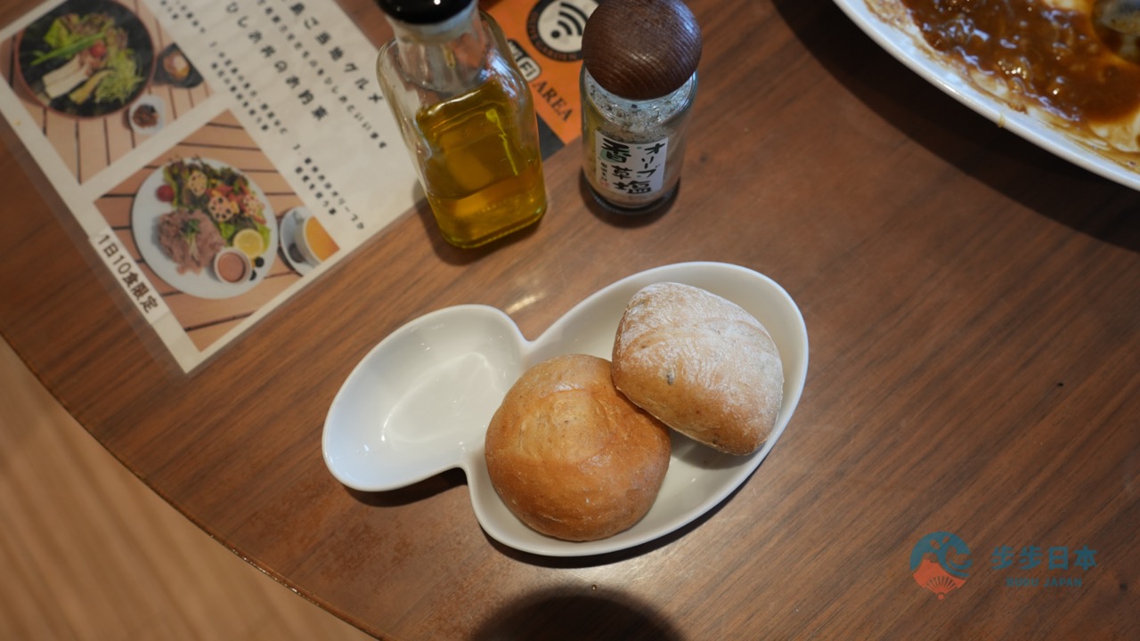 这里最令我惊艳的,是额外单点的面包!面包佐小豆岛产的特级初榨橄榄油,品尝最原味的香气。