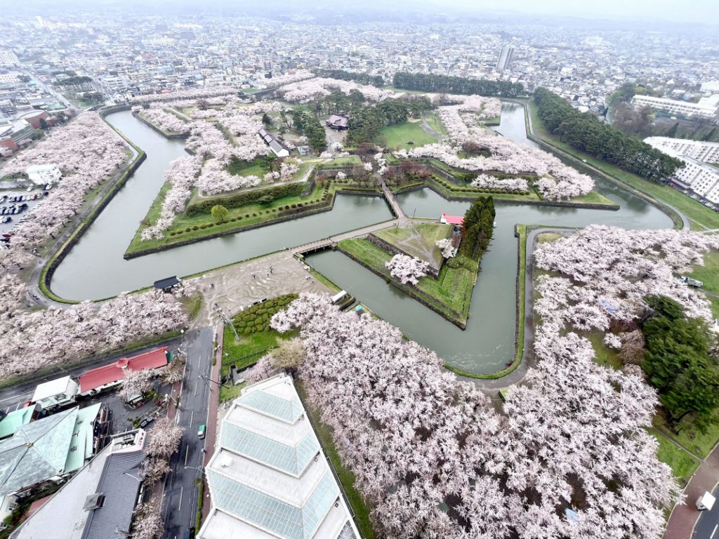 北海道函馆的春天,最令人屏息的画面莫过于被 1,600 株樱花染成粉红星形的五棱郭公园!每年 4 月下旬至 5 月上旬,是函馆市最佳赏樱时期。函馆公园、樱之丘通的樱花大道、神社的樱花隧道等,都能感受函馆的春日浪漫。跟随《步步日本》的脚步,一起走进樱雪纷飞的函馆吧!