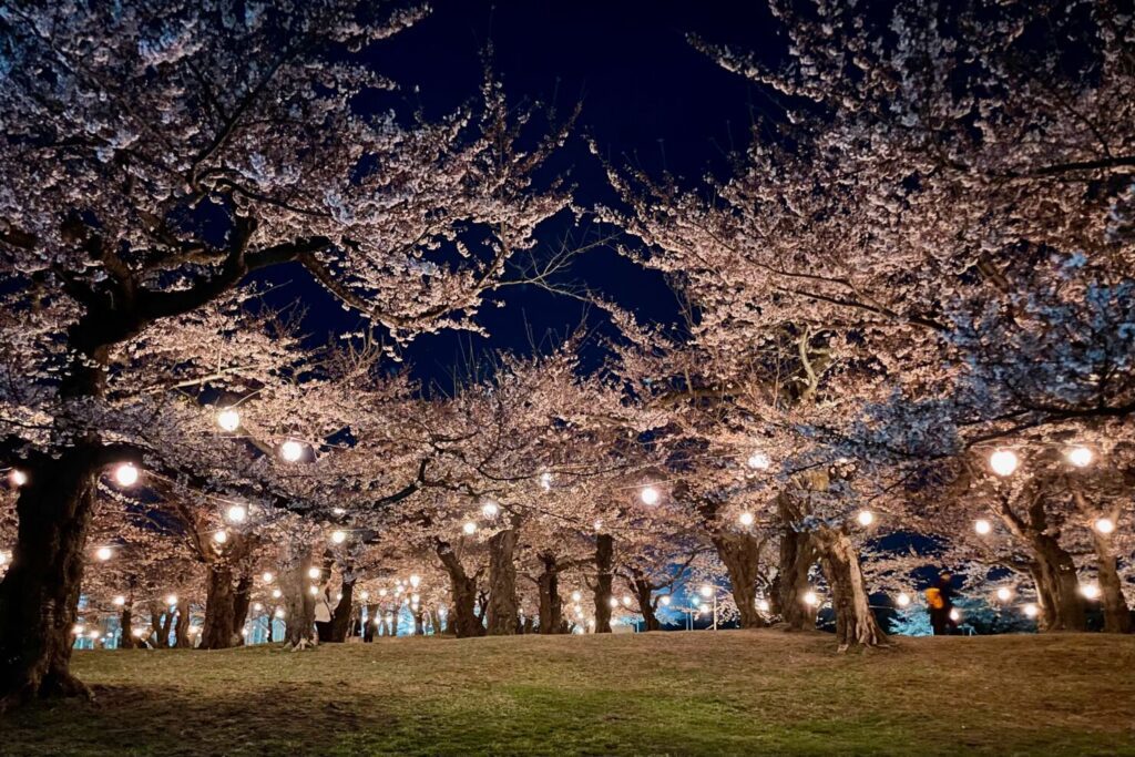 当樱花季节来临,夜樱活动更有当地摊贩(屋台)进驻,记得带张简单的地垫,便可以一边品尝北海道特色小吃,一边坐在樱花树下享受惬意的赏樱时光,体验最道地的日式花见文化!
