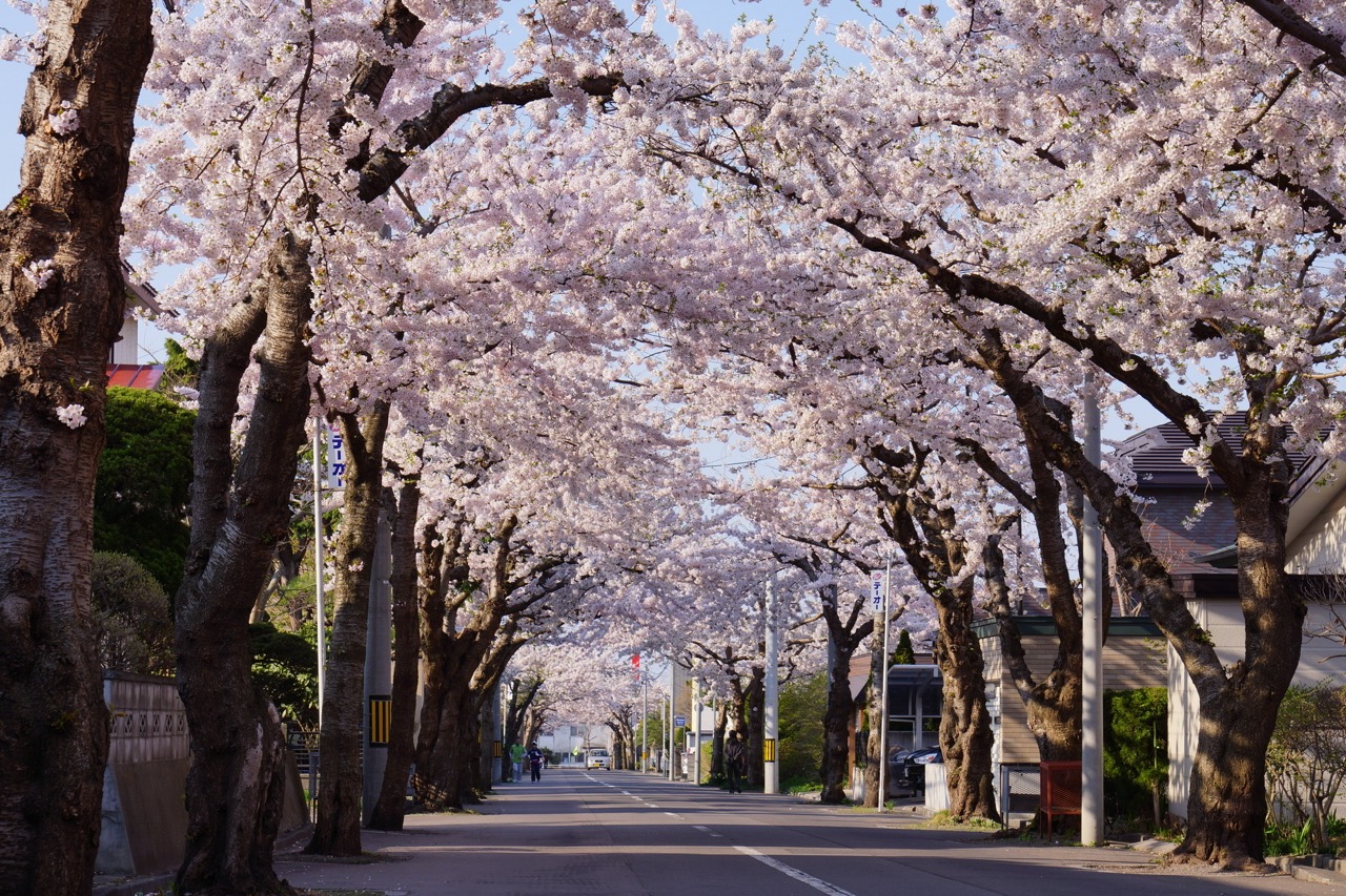 「樱之丘通(桜が丘通り)」是一处隐身在函馆恬静住宅区中的绝美赏樱秘境。长约 800 公尺的道路两旁,种植了约100棵树龄悠久的樱花树,满开之际,两侧伸展的枝桠会在空中交织,形成一条粉红樱花隧道。