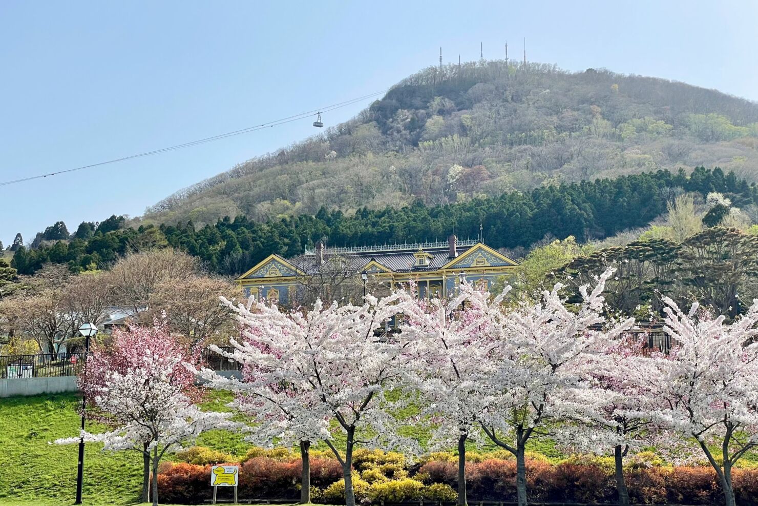 元町公园位于函馆著名的历史观光区,是俯瞰函馆港湾的最佳地点之一。元町公园周边的旧函馆区公会堂的华丽建筑,在樱花盛开时,粉嫩的樱花映衬着旧公会堂的蓝黄色外墙,被妆点得更加迷人!如此充满异国情调的春日画面,是函馆独有的风景。