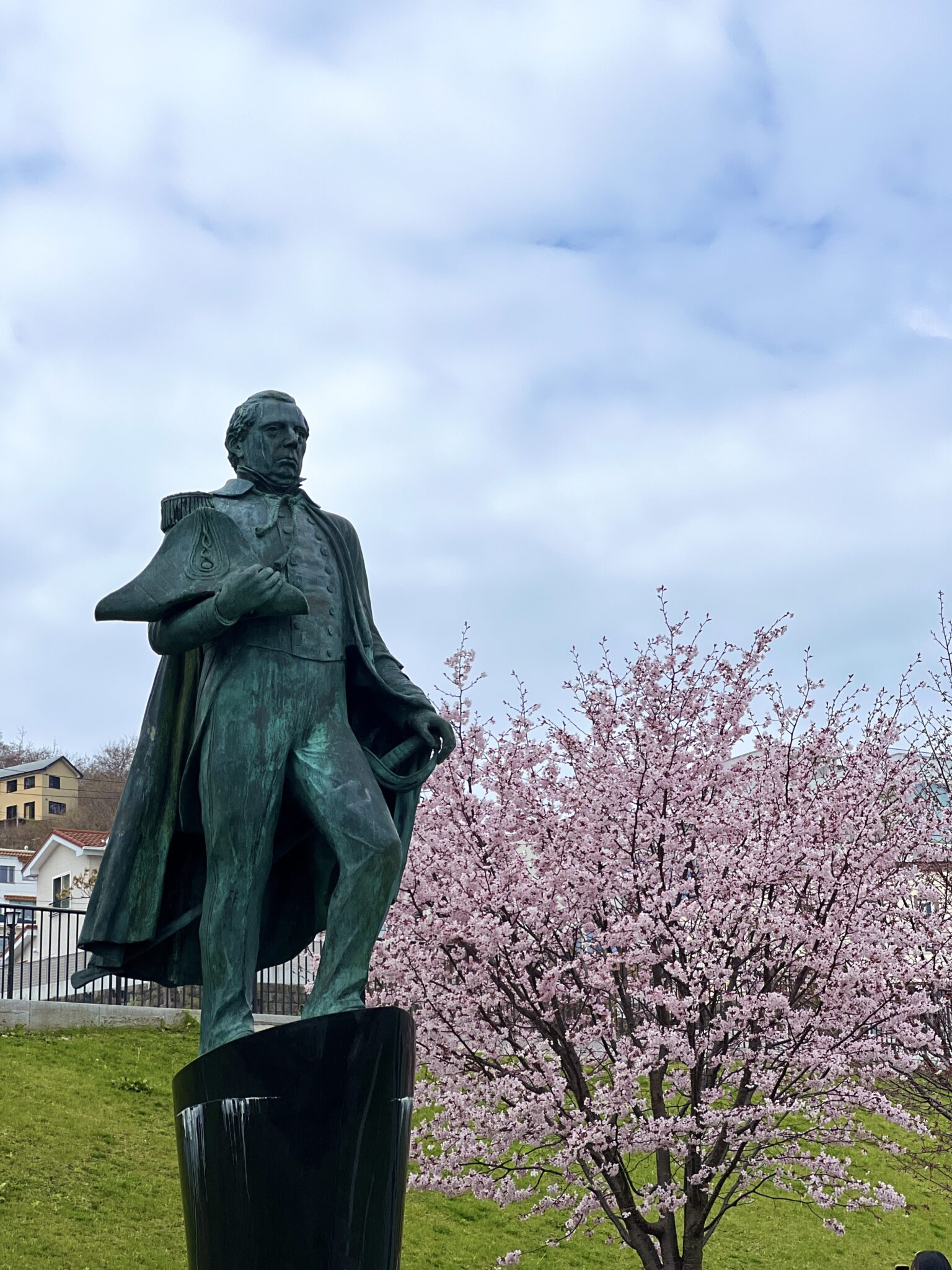 紧邻着元町公园与旧函馆区公会堂的「培里广场(ペリー広場)」,广场上矗立着当年率领黑船来航、促成函馆开港的培里提督铜像。培里广场是函馆元町地区当中, 樱花最早绽放的景点。不妨买杯咖啡,坐在长椅上,欣赏樱花与远方的海港,能让人感受到函馆作为国际贸易港口的历史底蕴与春日的温柔。