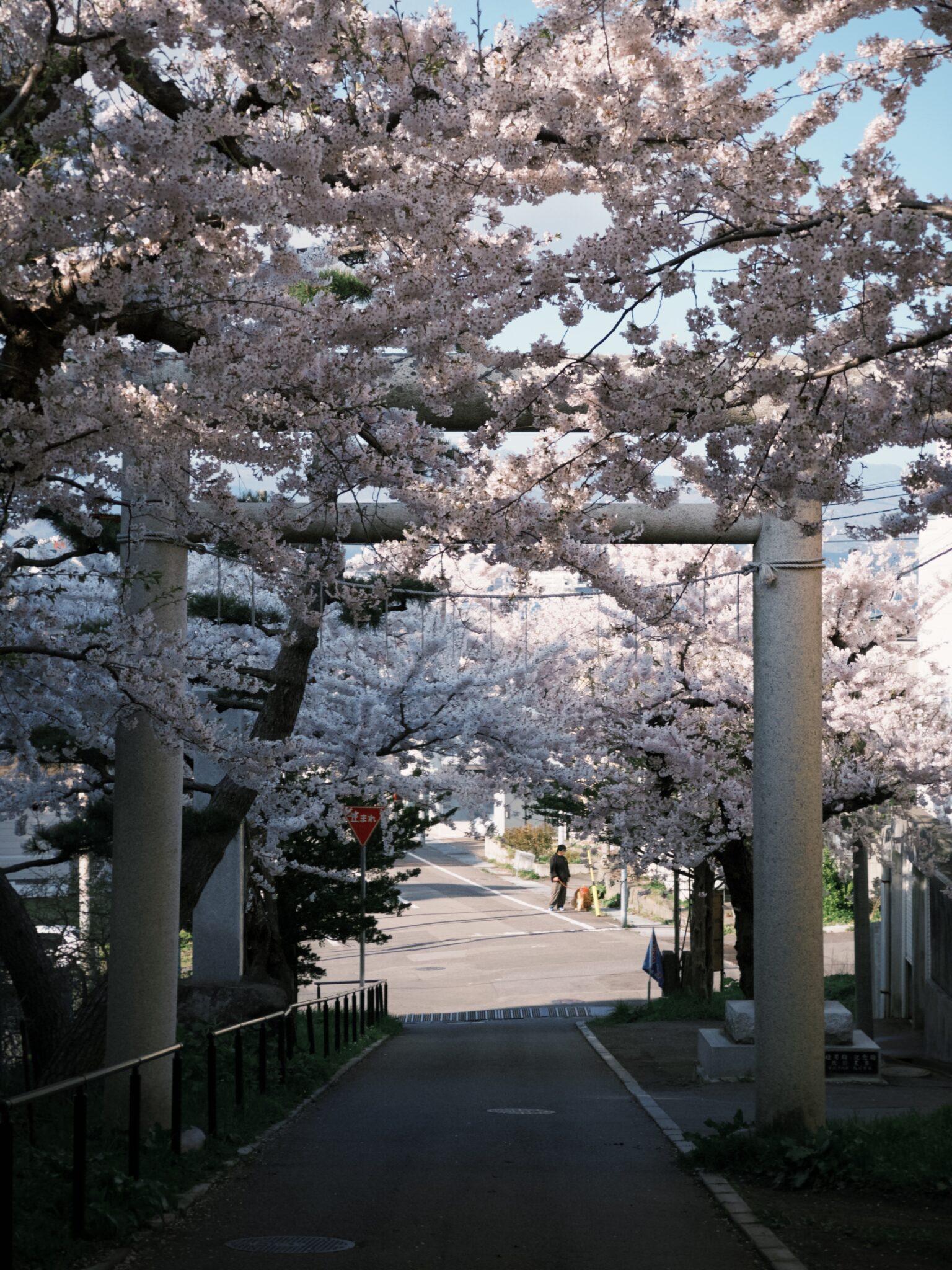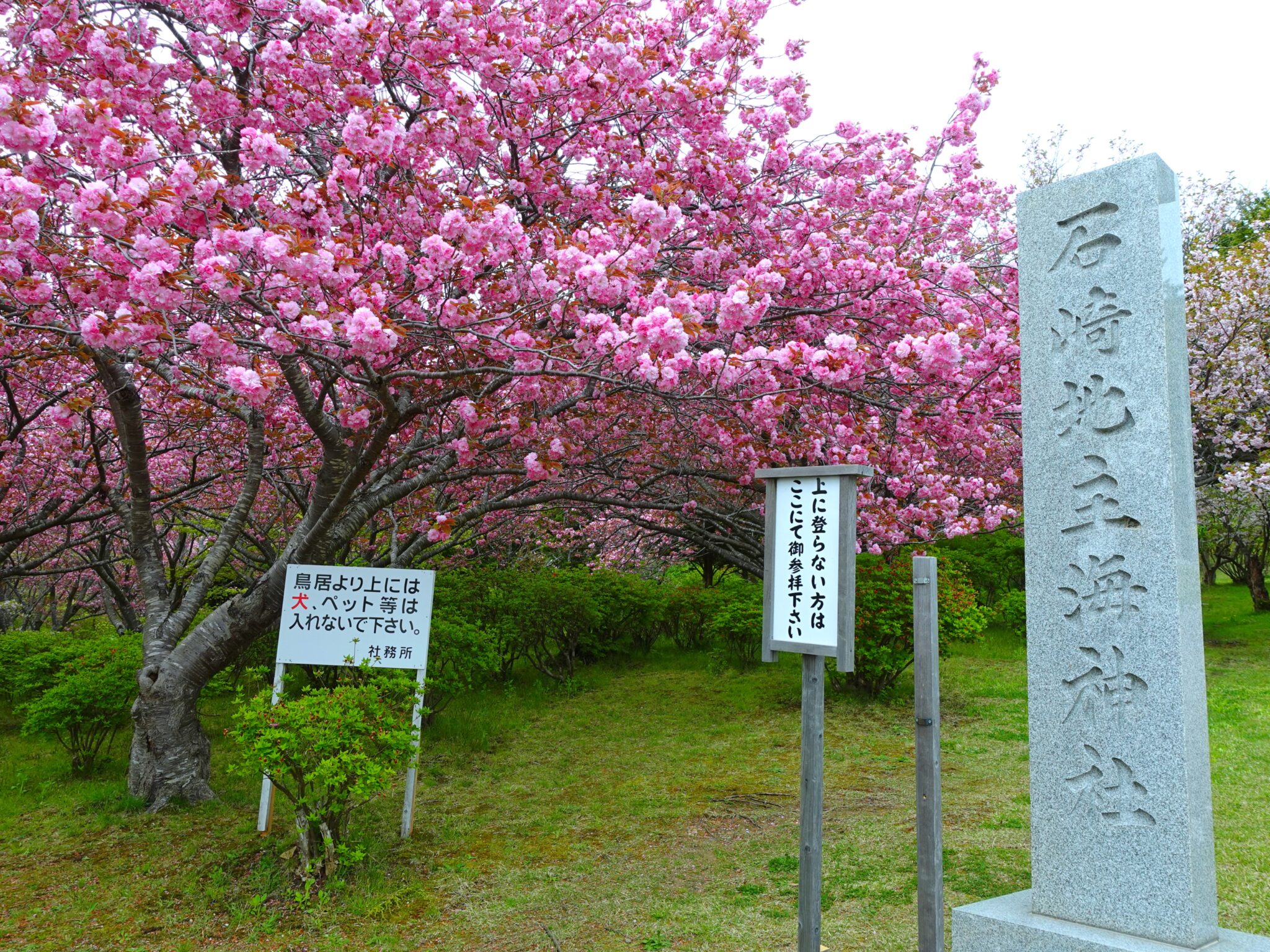 石崎地主海神社的八重樱花花期期通常比染井吉野樱晚约两周,约在 5 月中下旬至下旬才会呈现满开。如今如果错过了函馆市 4 月底至 5 月初的主要樱花赏樱期,就到石崎地主海神社吧!