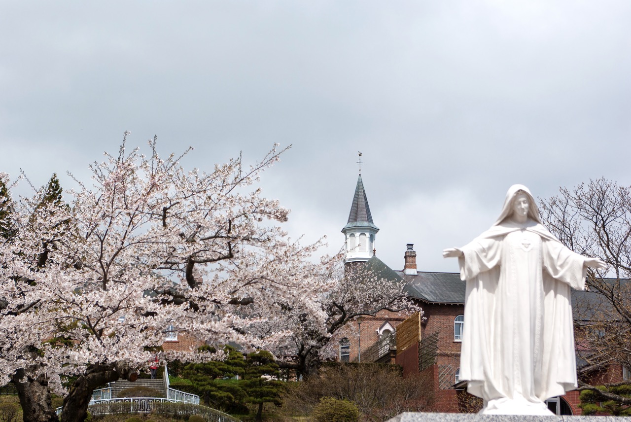 位于函馆郊区的「特拉皮斯汀女子修道院(天使の聖母トラピスチヌ修道院)」,是日本第一座女子修道院。当春季来临,哥德式与罗马式的修道院红砖建筑与洁白的圣母像,会被盛开的樱花温柔包围,营造出一种神圣而庄严的美感。参观完特拉皮斯汀女子修道院的庭园与资料馆后,还能到邻近「市民之森」公园享受北海道浓郁又美味的霜淇淋!