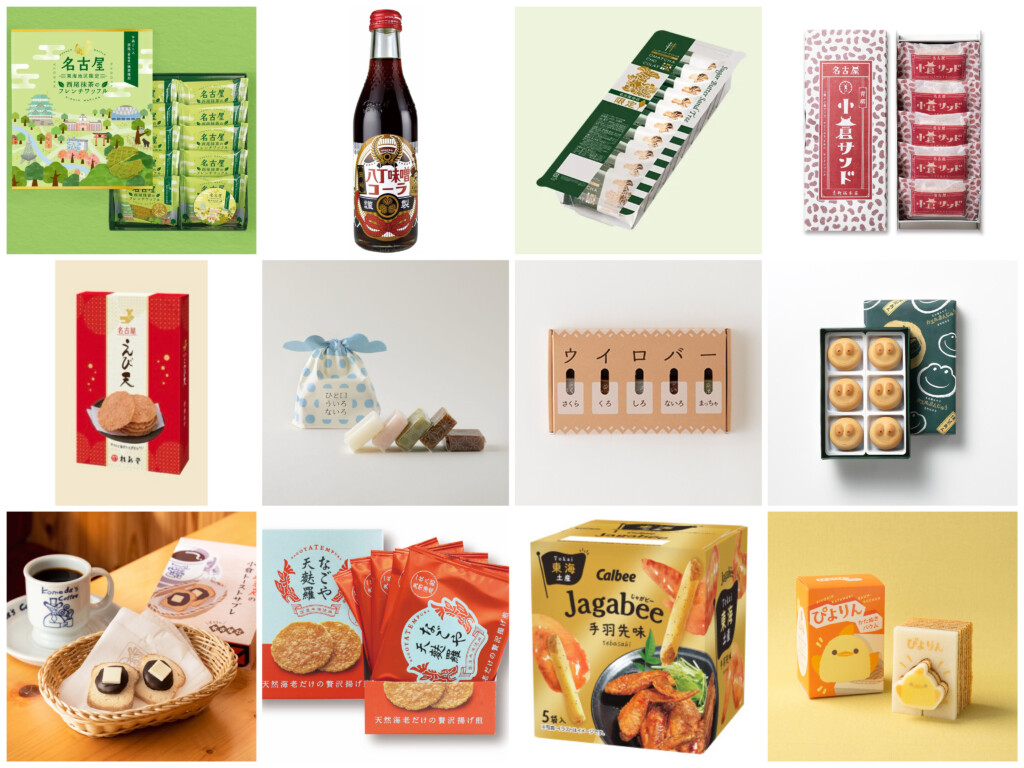 抹茶夹心饼干、手羽先风味零食、地区限定甜点等。