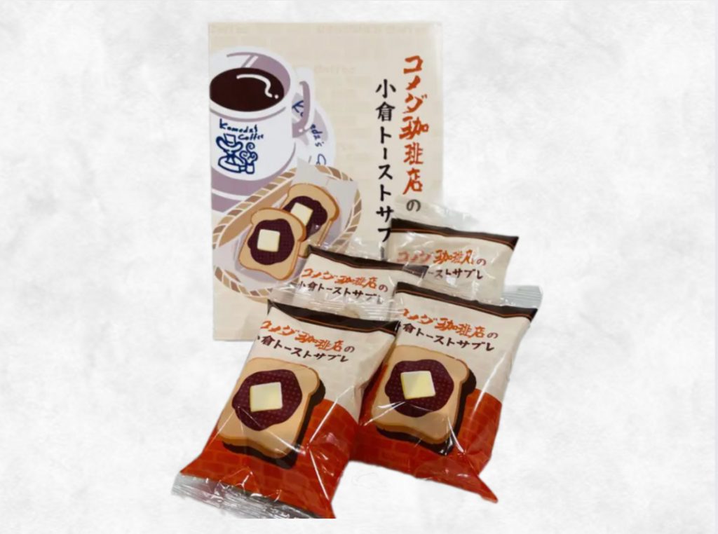 前面有提到名古屋著名的咖啡厅文化,而源自名古屋的「Komeda’s Coffee 客美多咖啡(コメダ珈琲店)」,与「银之葡萄(銀のぶどう)」联名,推出完美还原名古屋咖啡厅必吃小仓红豆烤吐司的可爱伴手礼「客美多咖啡小仓红豆吐司酥饼(コメダ珈琲店の小倉トーストサブレ)」。