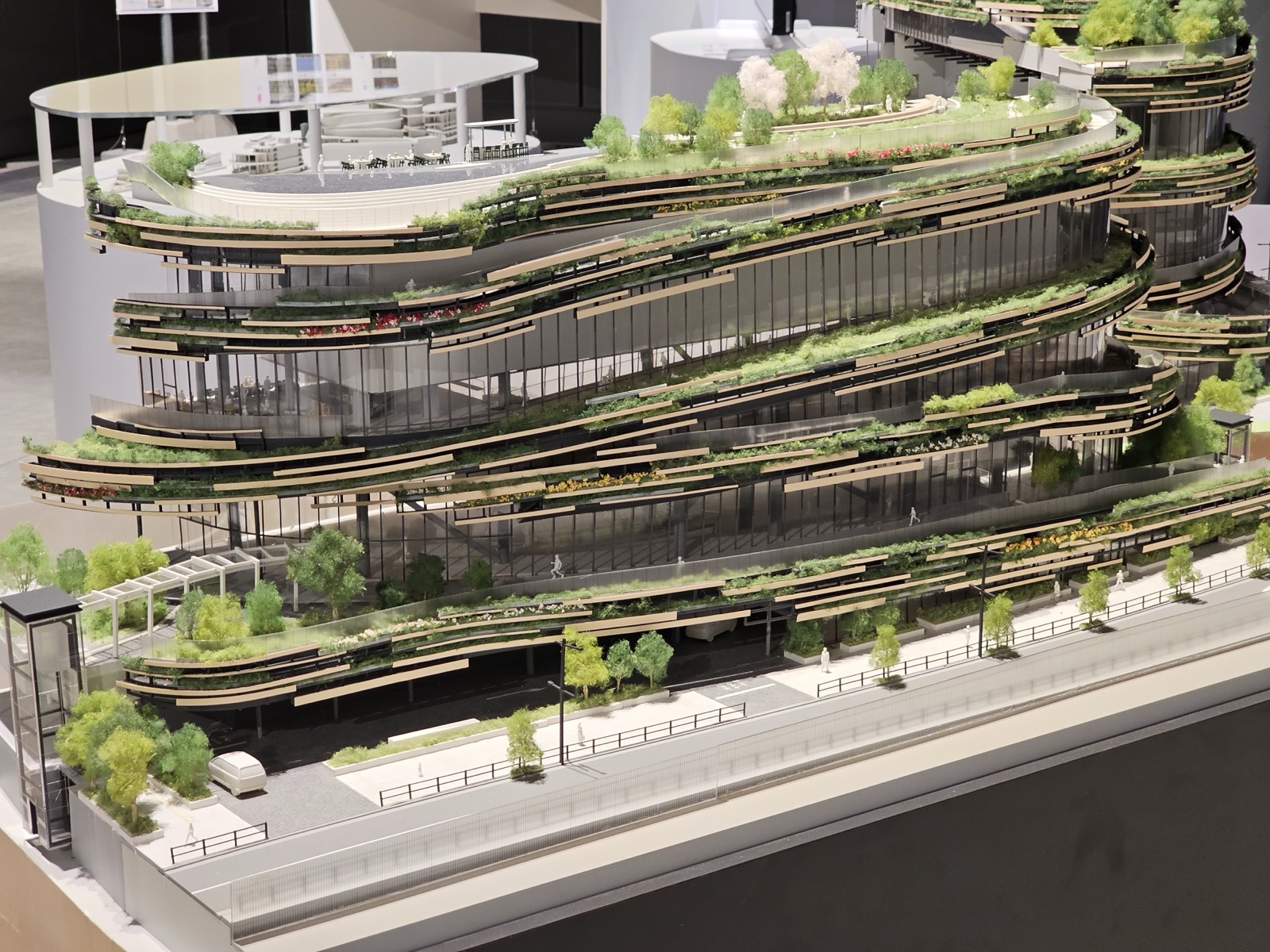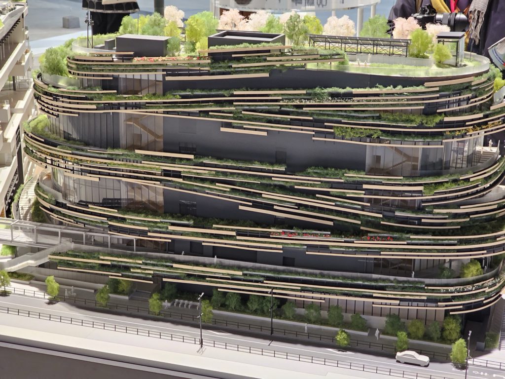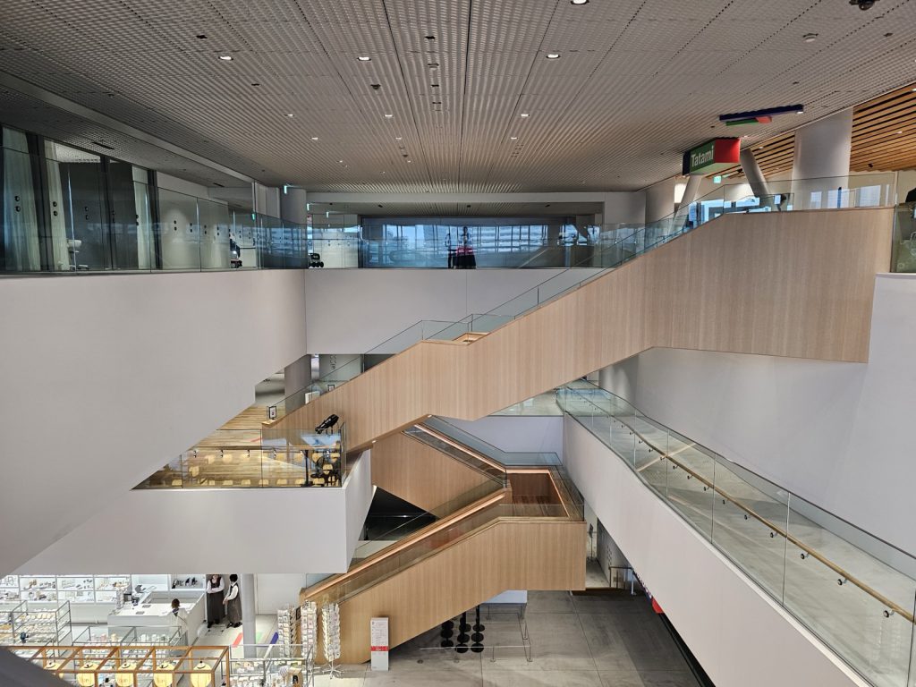 由隈研吾操刀设计的螺旋状建筑外观,以木材与绿意构成,让建筑与自然产生连续关系。馆内设有约450坪展览空间、大型沉浸式剧场、榻榻米空间,以及足汤露台、观月平台等休闲设施,使参观不再只是看展而已,还能够延展成一整段时间的文化体验 。