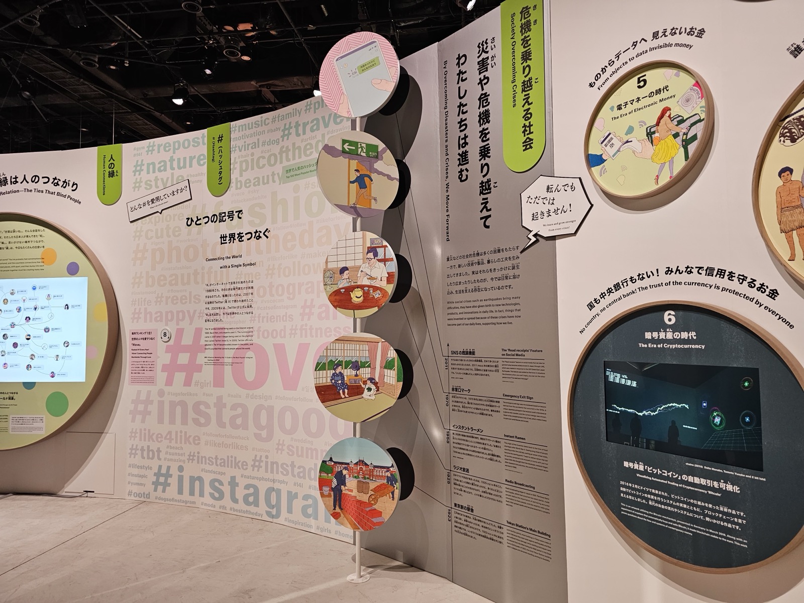 我很仔细地看完了开馆核心展览,「回旋展:持续进化的人类物语(ぐるぐる展:進化しつづける人類の物語)」,这个展览以「回旋」这个形态为切入点,展开跨领域的知性探索。