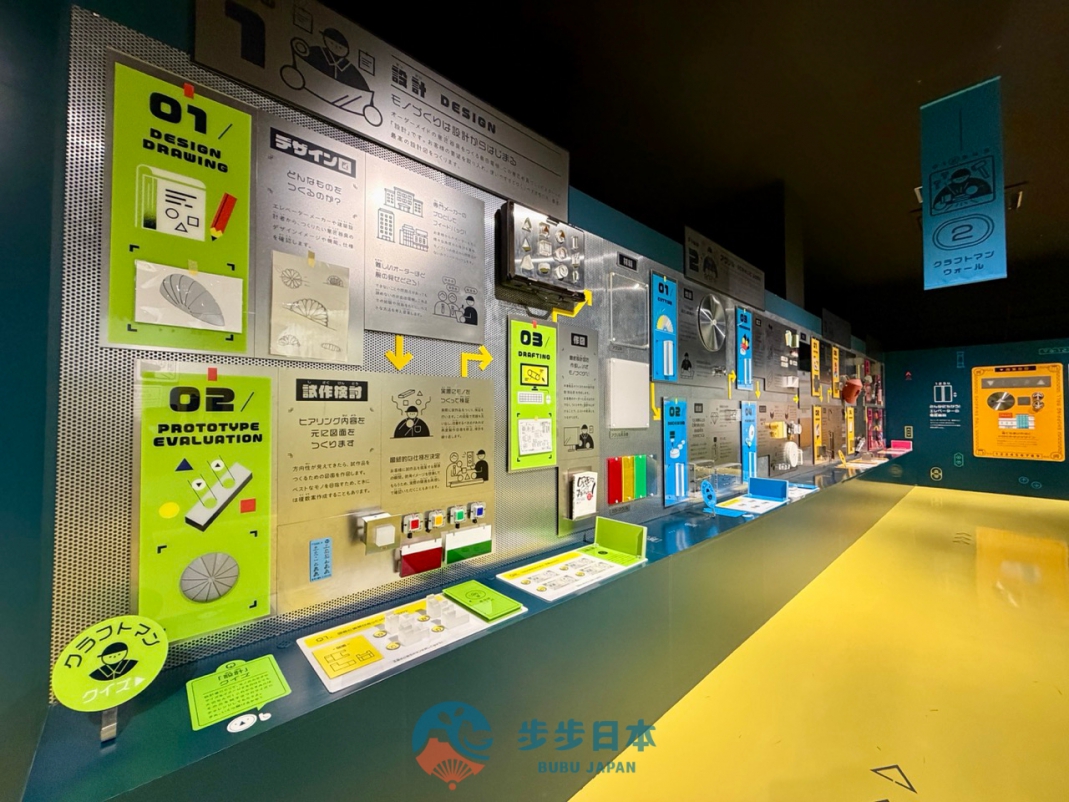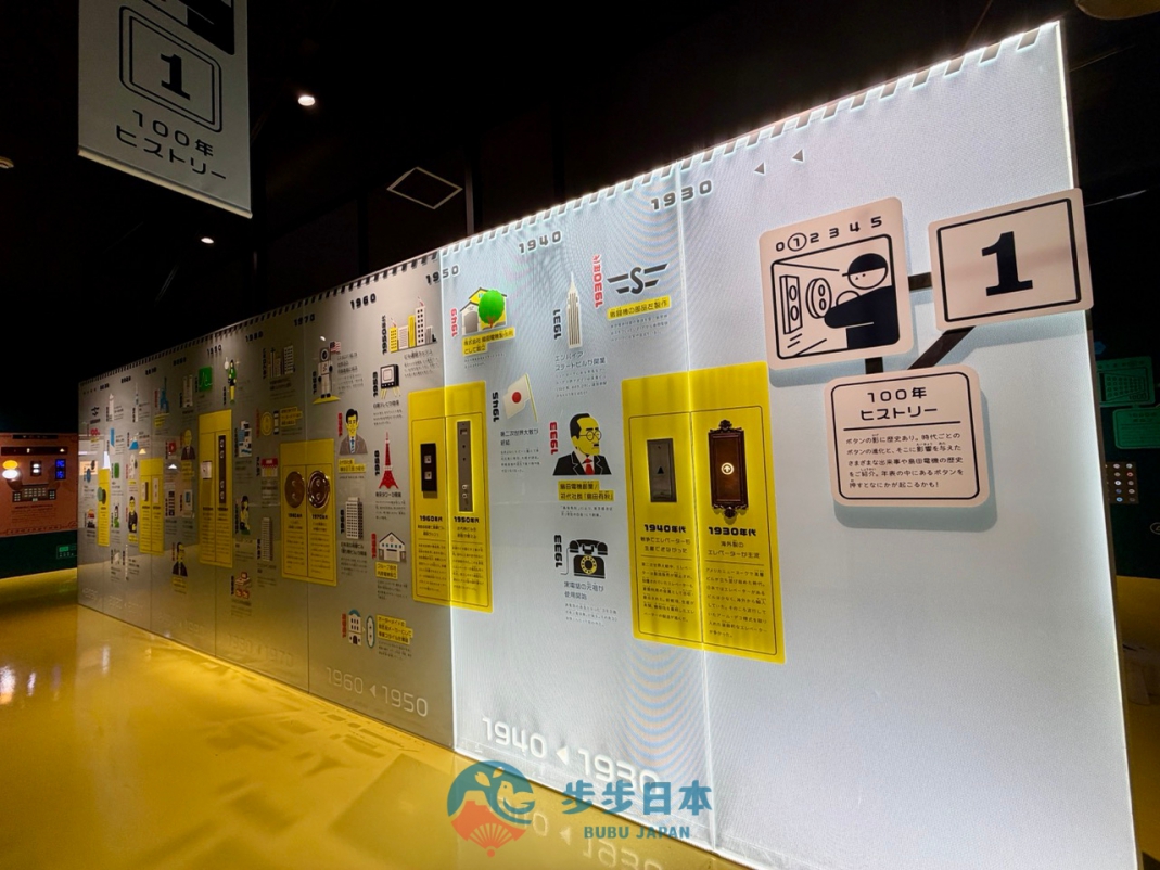 谁说知识展区一定枯燥乏味?「OSEBA 按钮博物馆」的知识学习区里,让沉稳的百年工艺也变得活泼好玩。这里以简单方式说明了「岛田电机制作所」与电梯共同成长的百年史。