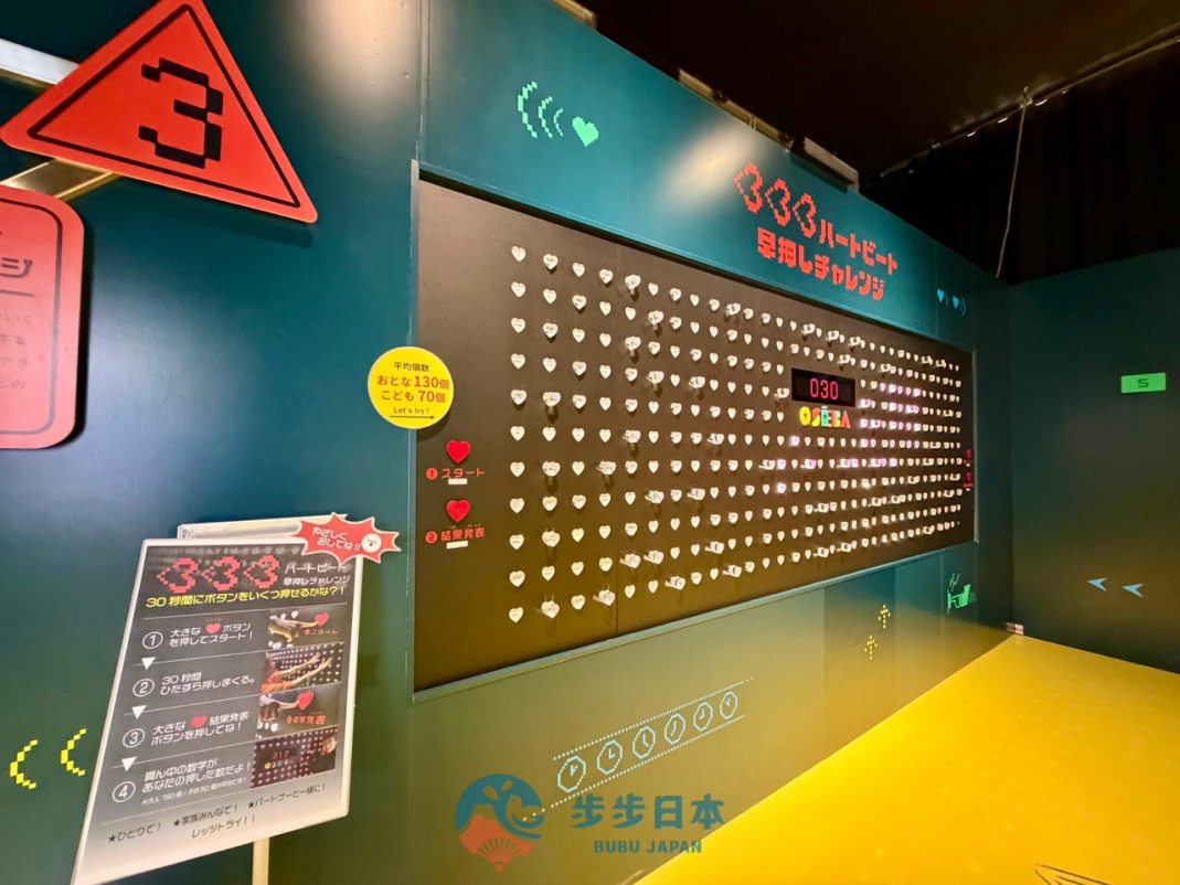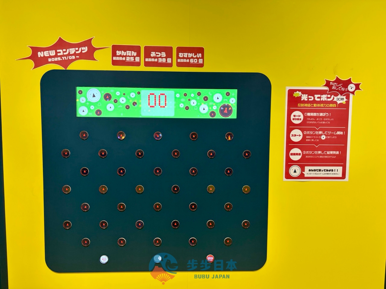 墙面上的按钮会随机疯狂闪烁,你必须像玩打地鼠一样,精准且快速地按下每一颗亮起的按钮。这项设施考验的不只是反应力,更考验手眼协调,玩到手软也舍不得停下来!