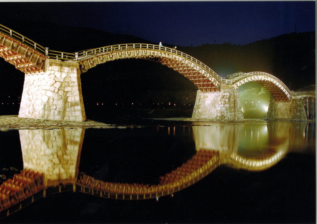 桥身横跨锦川,采用传统木造工法建成,完全不使用钉子,结构精巧。现今桥体为2004年重建版本,仍保留原有设计美感。适合喜欢历史建筑与传统景观的旅客安排。