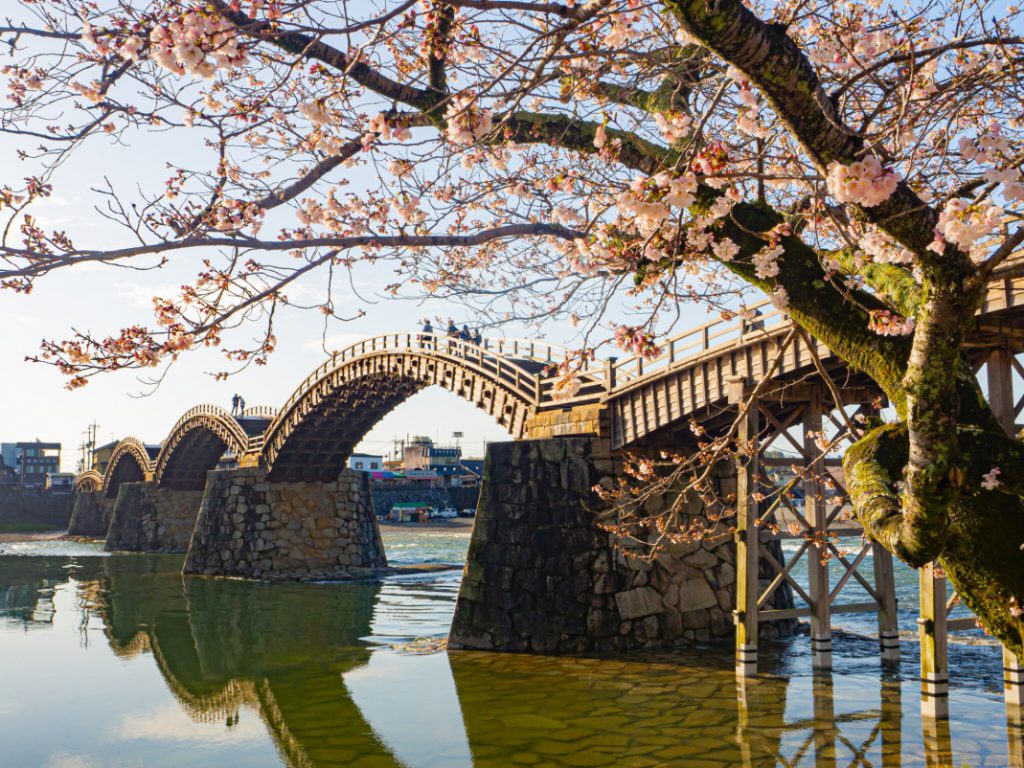 锦带桥是山口最具代表性的历史景点之一,也是日本三大名桥之一。桥身全长约210公尺、宽5公尺、高6.6公尺,