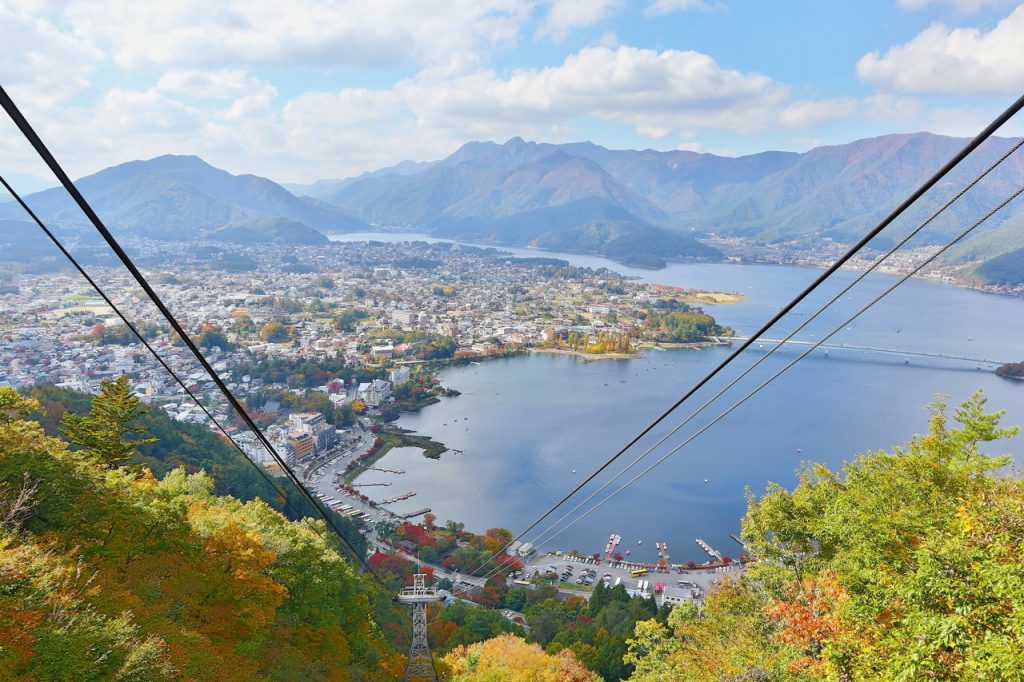 搭乘缆车(富士山パノラマロープウェイ)登上天上山,可以从高处同时看到河口湖与富士山的壮阔景色,是相当热门的观景点。山顶设有展望台与简单步道,停留时间约 30~60 分钟即可。