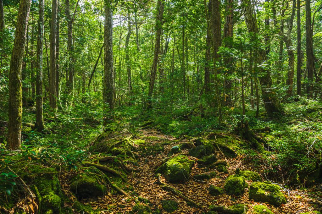 位于富士山西北侧的青木原树海(青木ヶ原樹海),是由火山熔岩地形形成的森林区域,拥有独特的自然景观。部分区域设有步道,可以轻松体验森林氛围,但建议选择安全、有指标的路线行走。