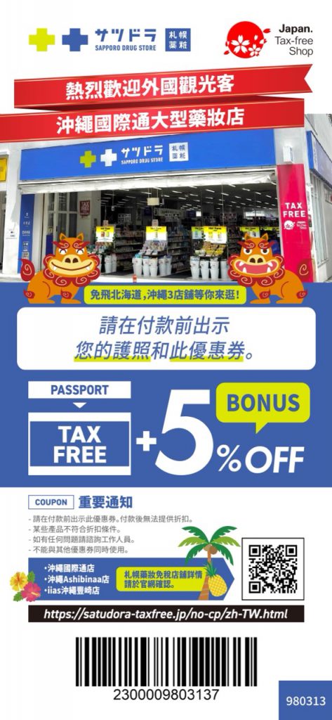 「札幌药妆」北海道+冲绳店铺专用优惠券