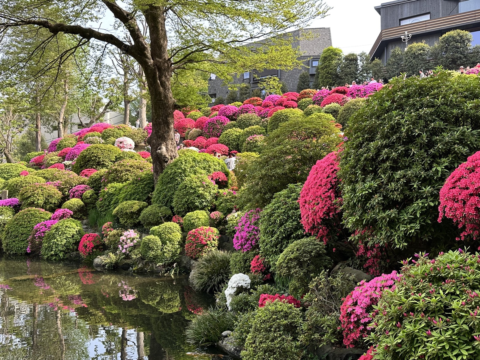 超过百年历史的根津神社,每逢春天四月,境内的杜鹃花园就会绽放超过三千颗的杜鹃花,形成一片灿烂且壮观的花海。这里的杜鹃花品种有一百多种,有很多没见过的杜鹃花,都在这里现身。
