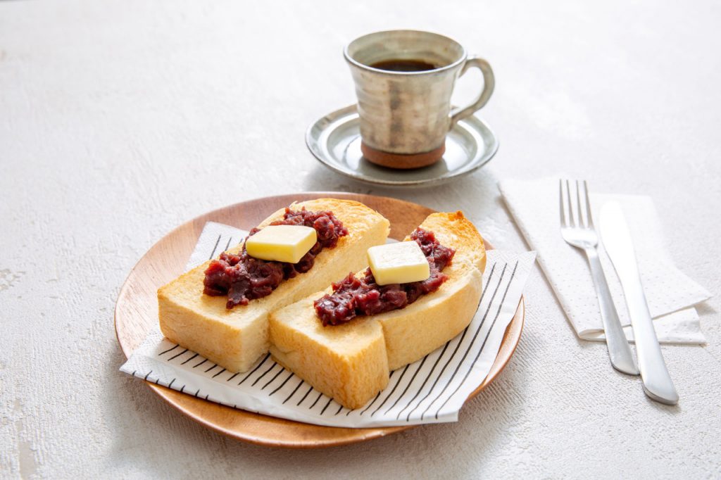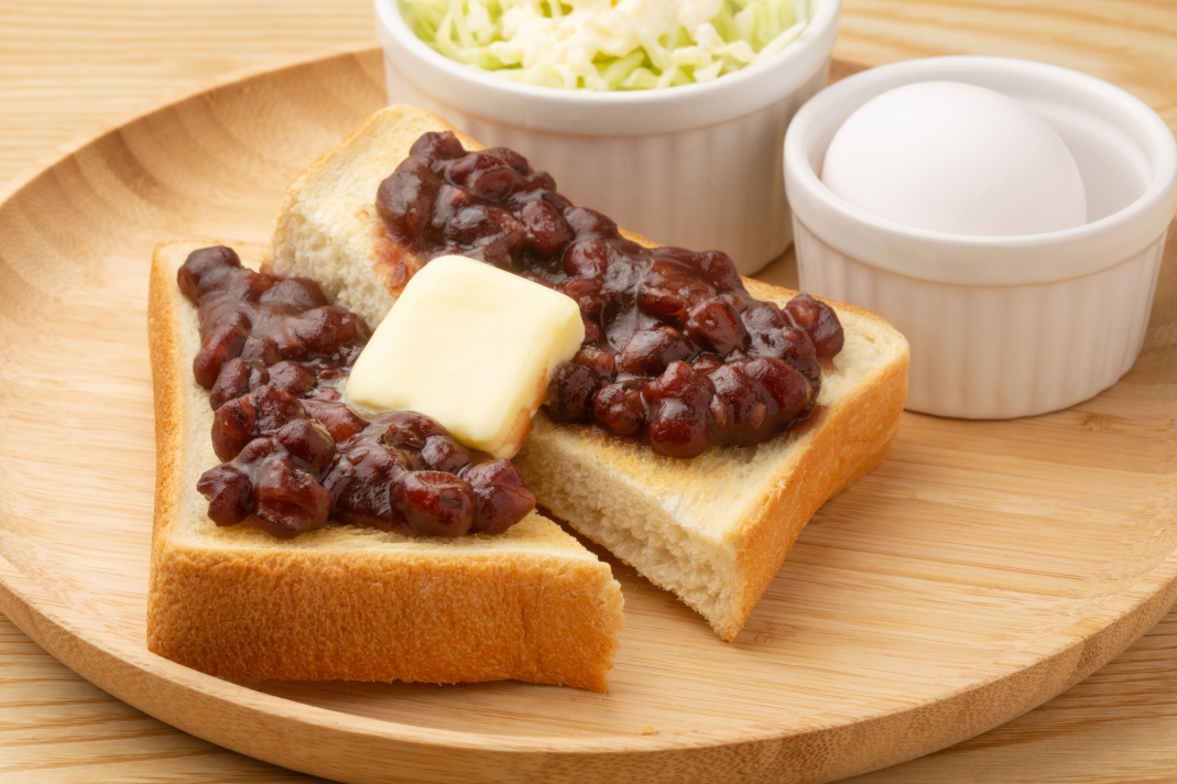 如今在名古屋,早餐服务通常会附上吐司、奶油与水煮蛋,也有升级版本,包含沙拉、优格或果酱等。其中最具代表性的组合,就是搭配当地特色的「小仓红豆吐司」。