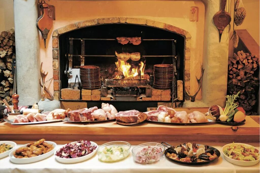 ▲ 午餐时间会将腌渍料理和西班牙海鲜炖饭等前菜摆在暖炉前,能以吃到饱的形式大啖美食