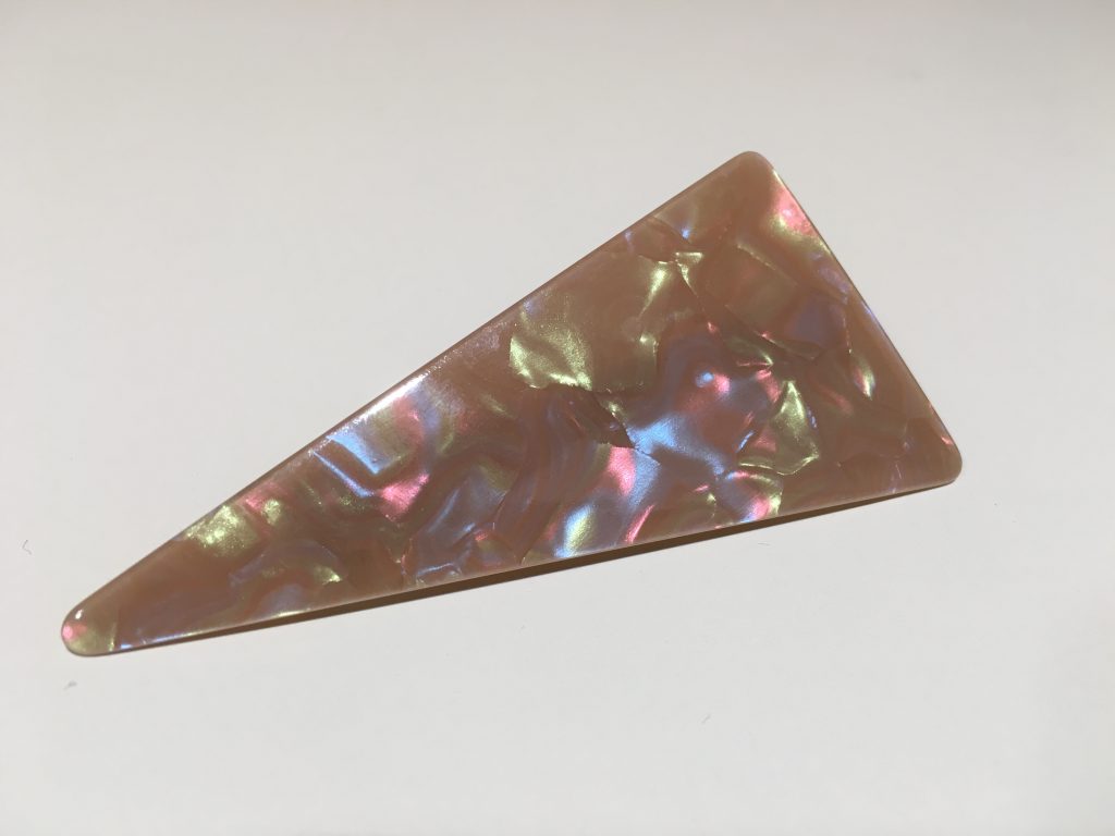 以压克力材质制成的三角造型发夹,表面折射出的亮面光感,适合今天想在细节处制造亮点的你!