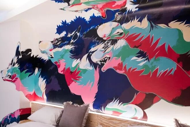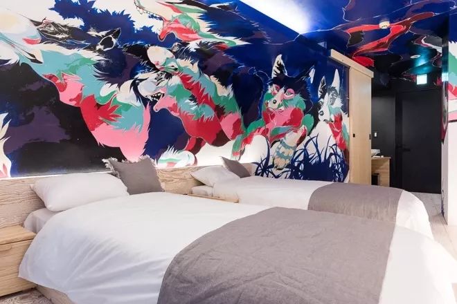 「BnA Hotel Koenji」邀请日本艺术家来在房间里创作,因此整个房间从墙壁到天花板,甚至床组与装潢,全都成为艺术家发挥创作的地方。