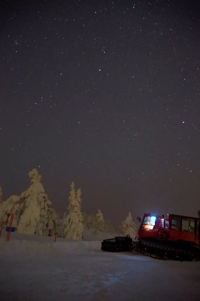 乘坐有车舱的压雪车,来一趟夜间树冰观赏会吧!