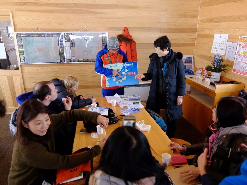 在阿仁滑选场的山顶站舍,目前正举办由树冰导览员讲解的「树冰教室」喔!
