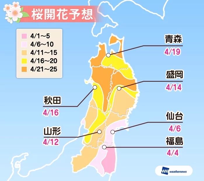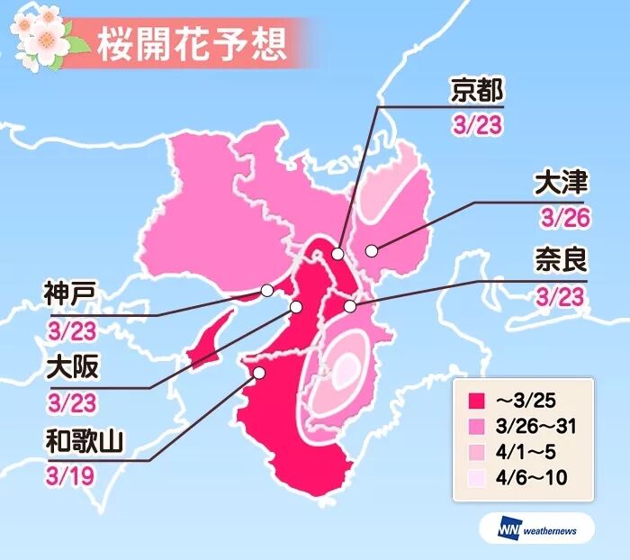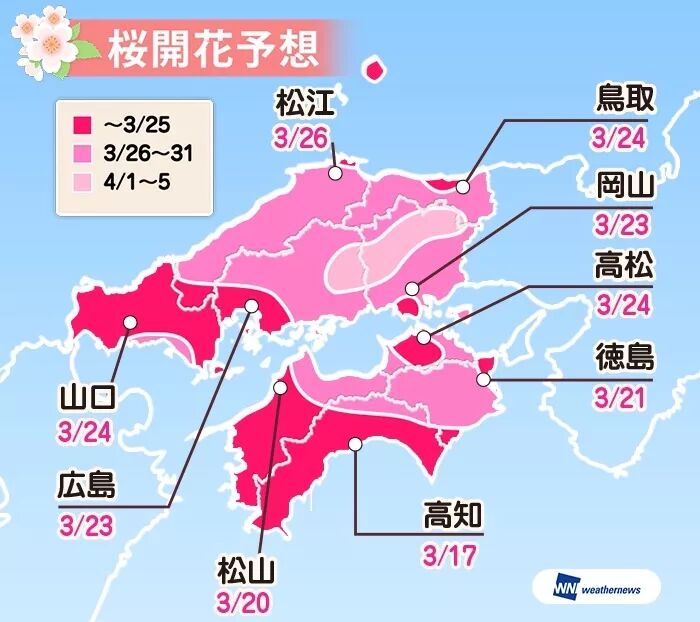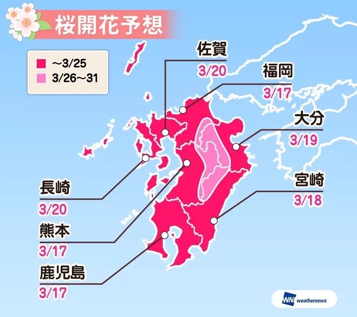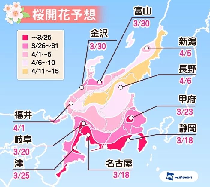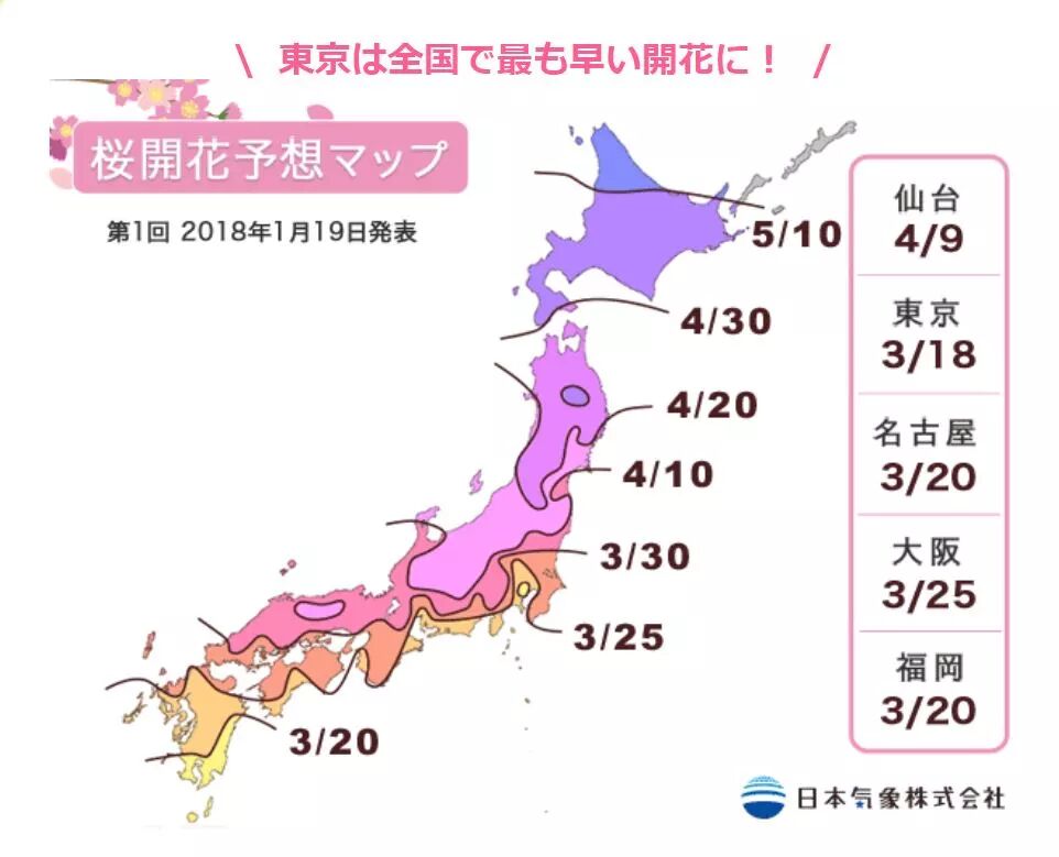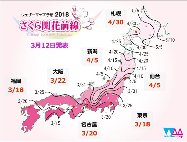 日本Weathernews抢先公布今(2018)年春季樱花开花预测