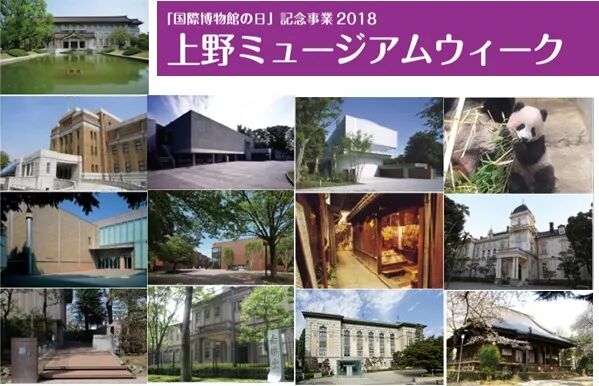 2018年的博物馆周将在5月5日~5月20日举办,上野恩赐公园周边的美术馆、博物馆、动物园等13个设施,以及上野暖帘会会员店家都会参与。