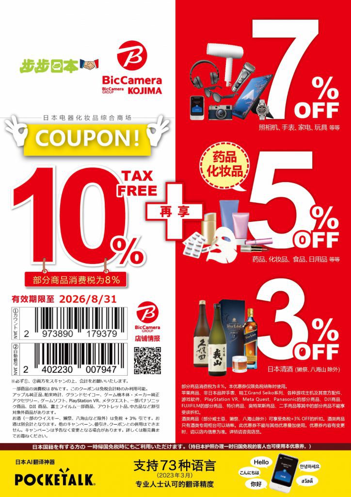 SOFMAP全店商品皆可提供免税服务,除了免税外,大部分商品还能再享5%优惠,并支援微信、银联卡等付款方式,让顾客能更加开心购物。秋叶原的AKIBA号店更提供行李寄物服务,让顾客在秋叶原观光、购物便利度大大提升喔!