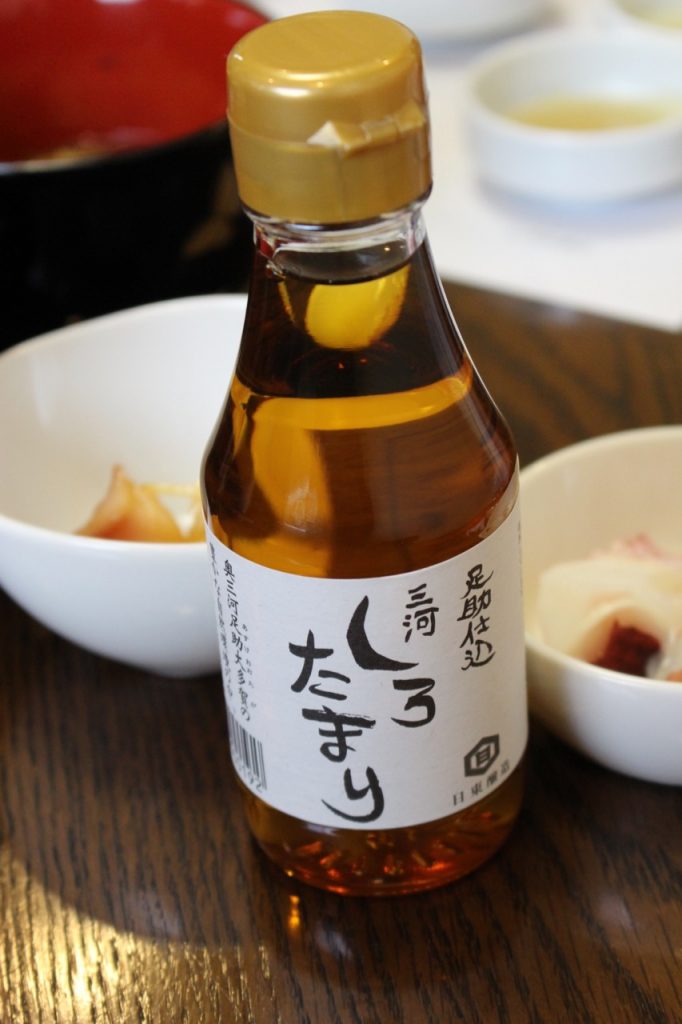 日东酿造日东酿造最初以两口屋商店为名,由初代的神谷末吉创业于百余年前的大正时代,位置就是现在的所在地。如今的日东酿造株式会社,则是成立于1938年,社长为蜷川洋一。日东酿造主要生产白酱油和溜酱油。近年来致力于开发新款的「三河白溜调味酱」(しろたまり),颇受好评。一反溜酱油百分百使用大豆,白溜调味酱是不用大豆,100%只使用国内小麦制成的酱汁。制作过程与白酱油相同,味道更适合用作煮火锅、关东煮。因为采用伊豆大岛的天然海盐「海之精」,而非人工的精制盐,烹饪中可取代食盐,对身体更健康。