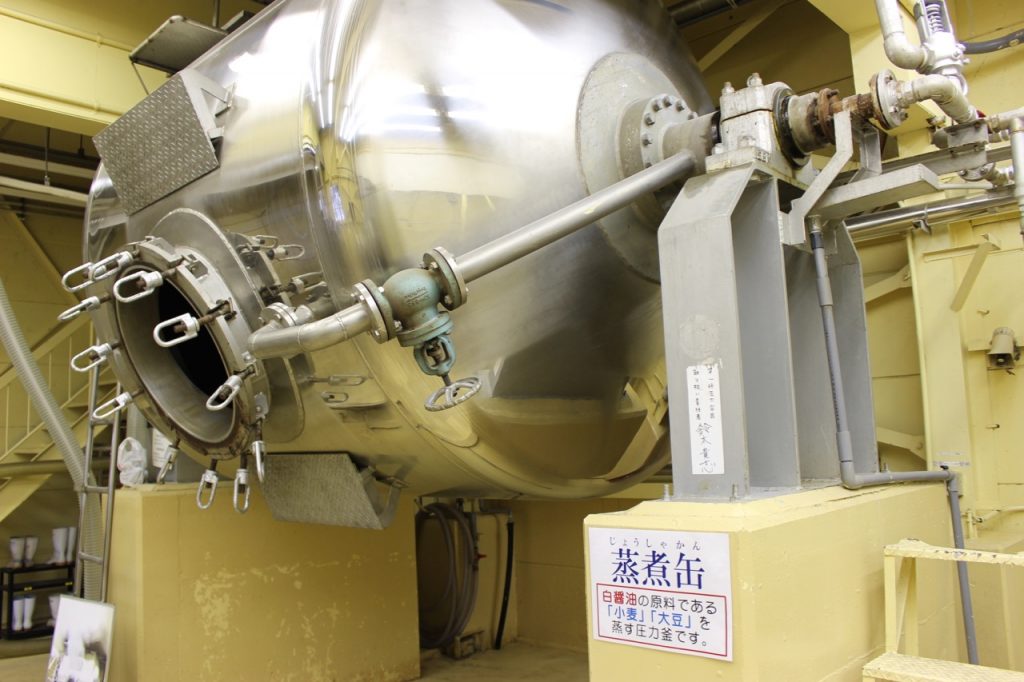 最后一间是「YAMASHIN酿造」工厂。YAMASHIN(ヤマシン)同样也是一间酱油老铺,最早可追溯到江户时代享和二年(1802年)就开始从事酱油的酿造。在这里不仅看见了制造酱油所需的新式机械,也看到存放大豆发酵的古老仓库,被努力维护着保存下来。新旧文化的共存,酱油,扮演起美好的桥梁。