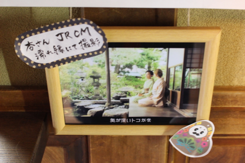 庭园内超过四百年的山桃树,绿荫盎然,小小的庭园像是收纳起整个地球的森林田野,盈满奥妙的况味。JR北陆新干线开通的电视广告之一,其中有一幕就是杏和外国女生一起坐在屋檐下,欣赏奥妙的庭园风景。