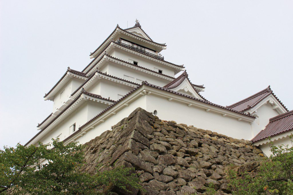 最初的鹤城在距今六百多年前建造,后来因为1611年的一场地震而损毁。1627年经过重建后,却又在戊戌战争明治政府入城后,于1874年遭到拆毁,只留下周围的城墙。不过因为鹤城对福岛会津人是极为重要的精神象征,于是在市民多方奔走和请求下,终于在1965年再次重建。如今,我们所看到和走进的鹤城,便是在此时复原而成的。2015年造访之际,恰逢鹤城五十复原周年纪念,处处可感受到欢庆气氛。