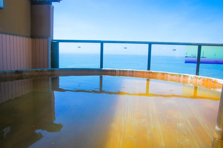 馆内温泉分成三个,女性温泉在八楼,男性温泉在九楼,而可以眺望海景的温泉则在十楼。