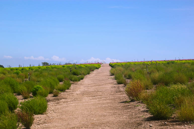 周围是一年到头都盛开的美丽花田。秋天到11月底,是欣赏灿红的地肤子(扫帚草)季节。