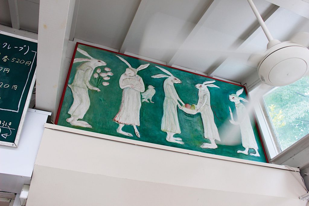 兔子馆里到处都装饰着画家店主吉田希美子喜爱的兔子图案,「lièvre」便是法文中兔子的意思。咖啡店地下楼的小房间是一方小小的艺廊,表情充满个性的女孩与动物绘画迎接每位到访的客人。房间虽小,但一置身在这块色调柔和的空间里,感觉就像被卷入童话世界中一样……