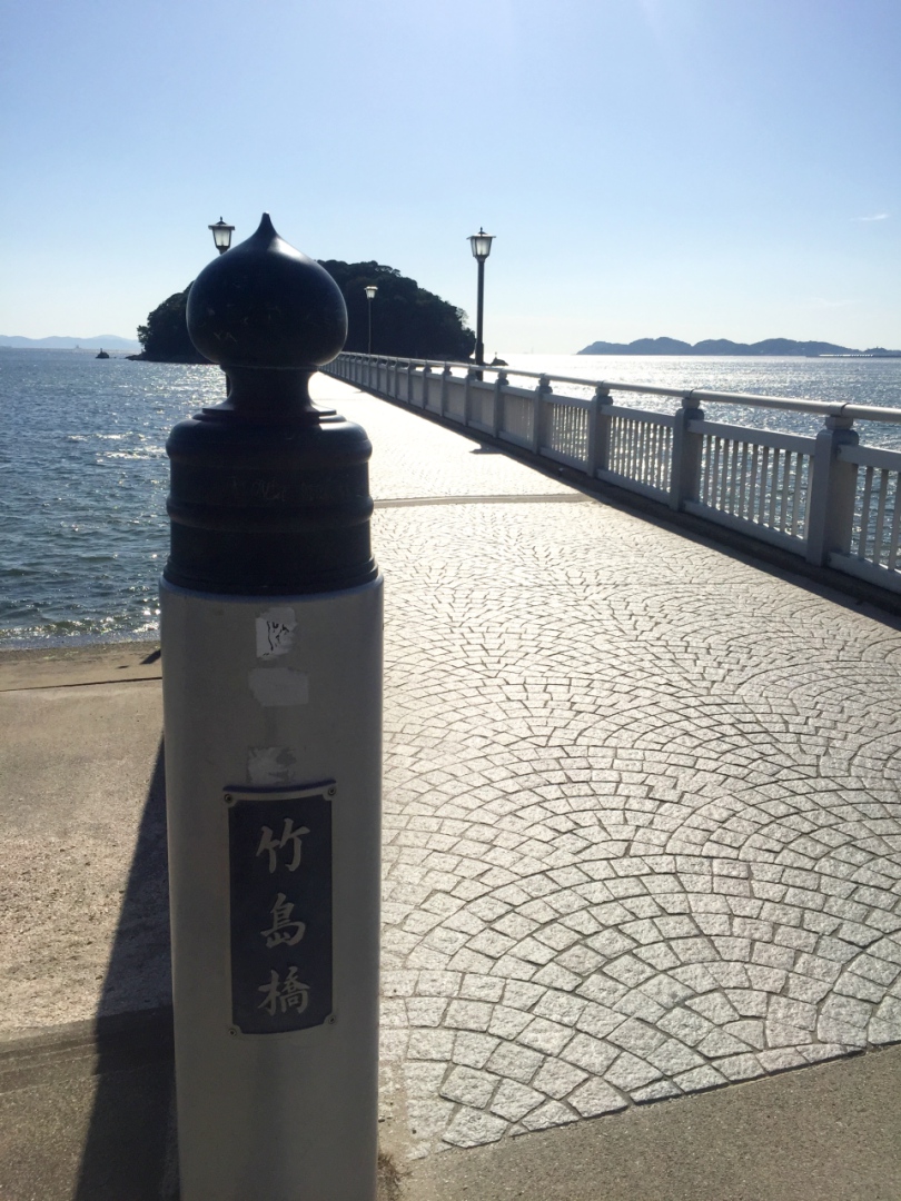 竹岛是在三河湾约1.9公顷的无人小岛,可经由竹岛桥与本岛连结。虽然与本岛只有短短400公尺的距离,但整个岛却有着与本岛截然不同的独自的植物生态,在昭和5年被国家指定为「自然纪念物」(日文:天然记念物)。再者,竹岛上有包括八百富神社等共5个神社。由于整个岛都是神的领域,也是最近日本人很爱的能量景点(パワースポット)之一。