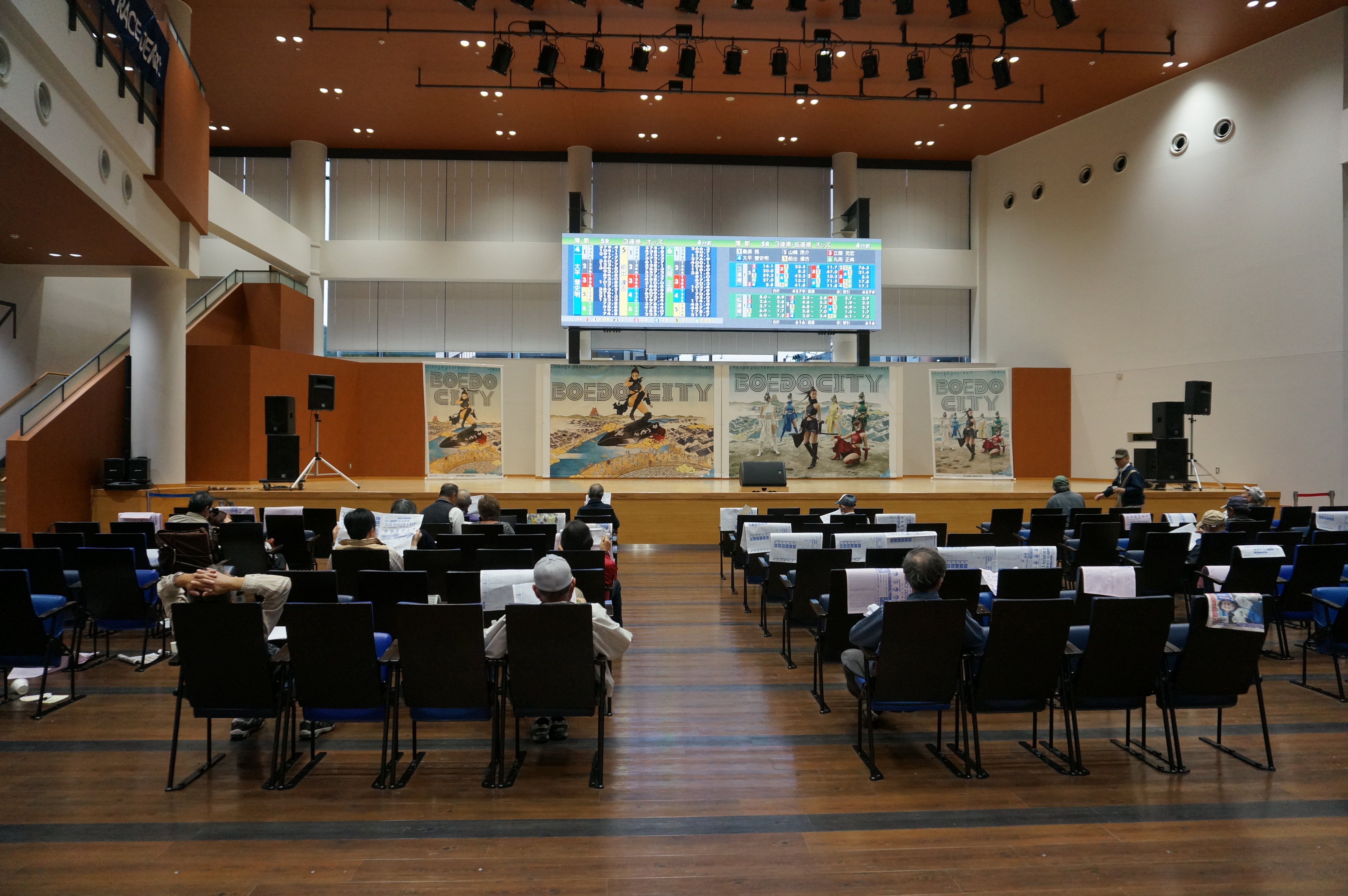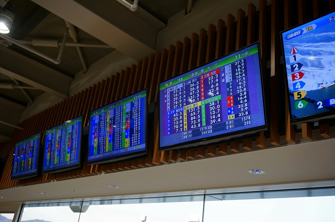 其实我在去之前对于竞艇的印象是非常负面的。在充满烟味的昏暗房间里,张牙舞爪的阿伯们手上抓着舟券,大声的对着竞赛的选手们喊叫。输了就生气的把手上的舟券撕碎,用力的丢在地上……但实际上到了会场却完全颠覆了之前的印象,让我惊讶到嘴巴合不拢。崭新的建筑跟挑高的室内,太干净漂亮了吧!而且也闻不到讨厌的烟味。