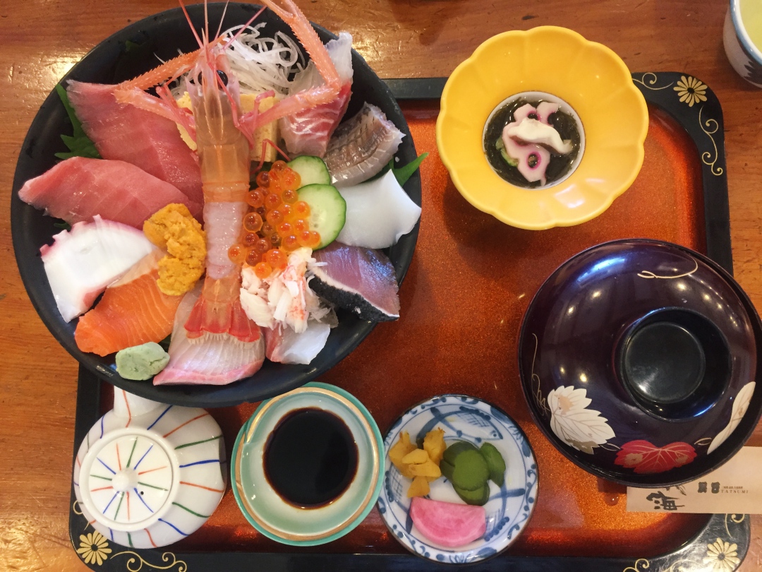 点了最有名的,使用三河湾当地补获的新鲜海鲜做成的海鲜丼中午套餐。
