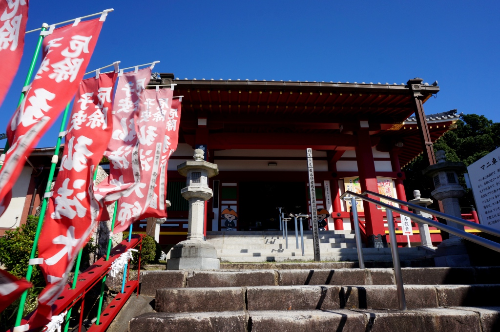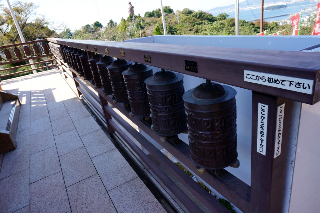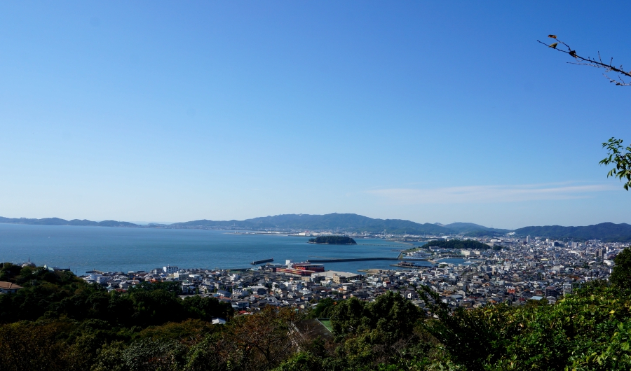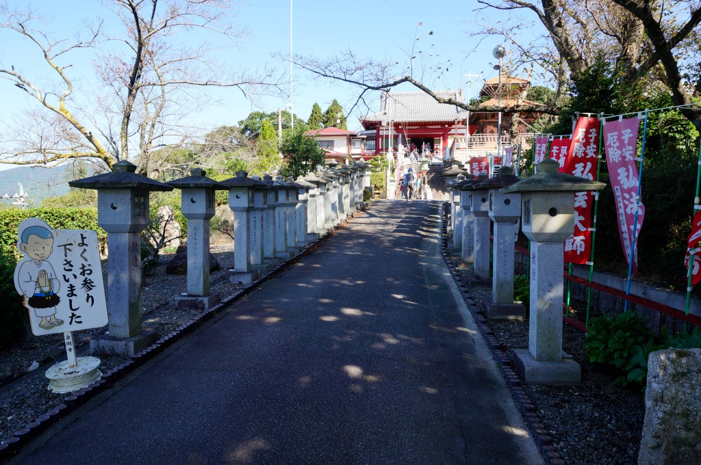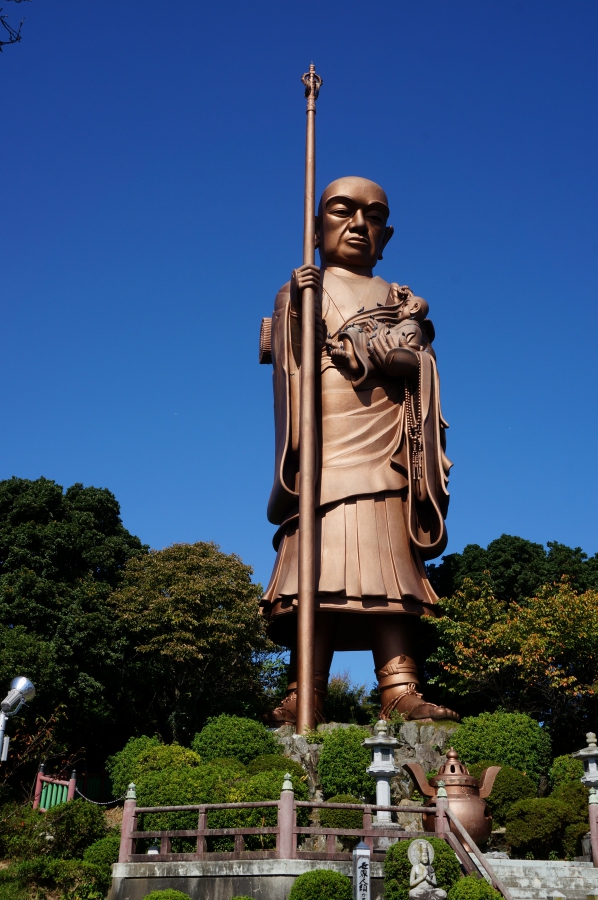在弘法山上的金刚寺是祭祀以求子,安产闻名的真言宗弘法大师(空海)的寺庙。也是日本最大的经轮塔所在地。而在寺庙旁的山顶伫立著东洋第一高(18.78m)的弘法大师像。由一望无际的高台放眼望三河湾真是美不胜收。