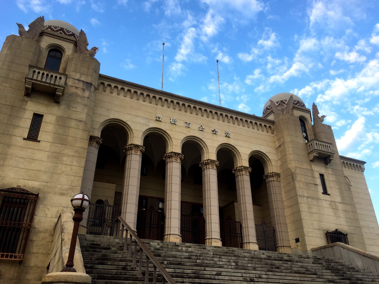 丰桥市公会堂是国家指定登录文化财,建于昭和6年(1931年)的罗马式建筑。建在高台上的巨大建筑,厚重的水泥外墙,半圆型的屋顶及顶上展翅的老鹰,让人联想到哈利波特的霍兹华格魔法学校。如果你对台湾日治时代所留下来的建筑有兴趣的话,这也是一个值得来参观的景点。