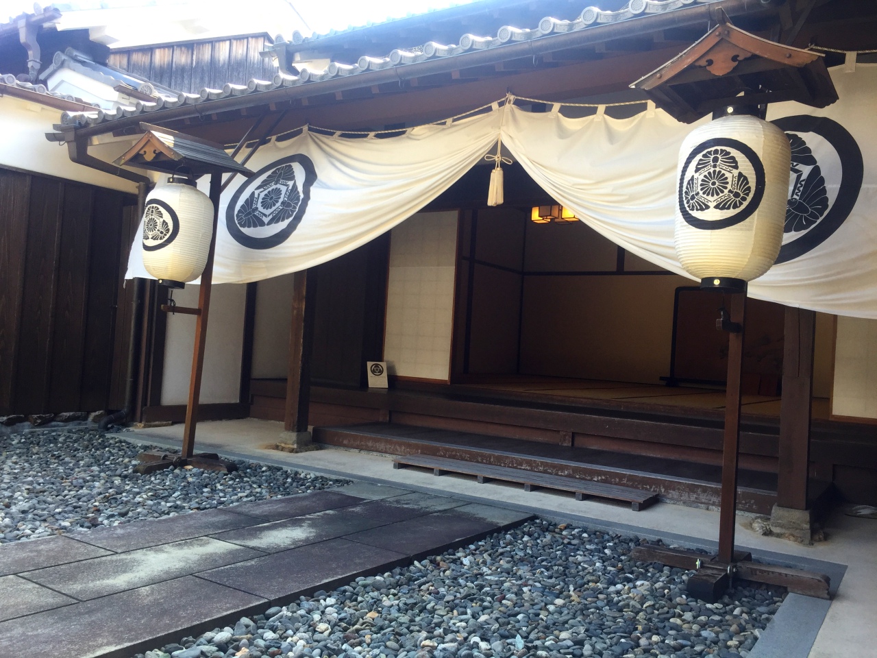挂帘及灯笼的家纹是当天住进旅馆的人的家纹。听说大臣或门仆会在主人到旅馆前先把主人家的家纹拿来挂上,让大家知道今天是谁来住。